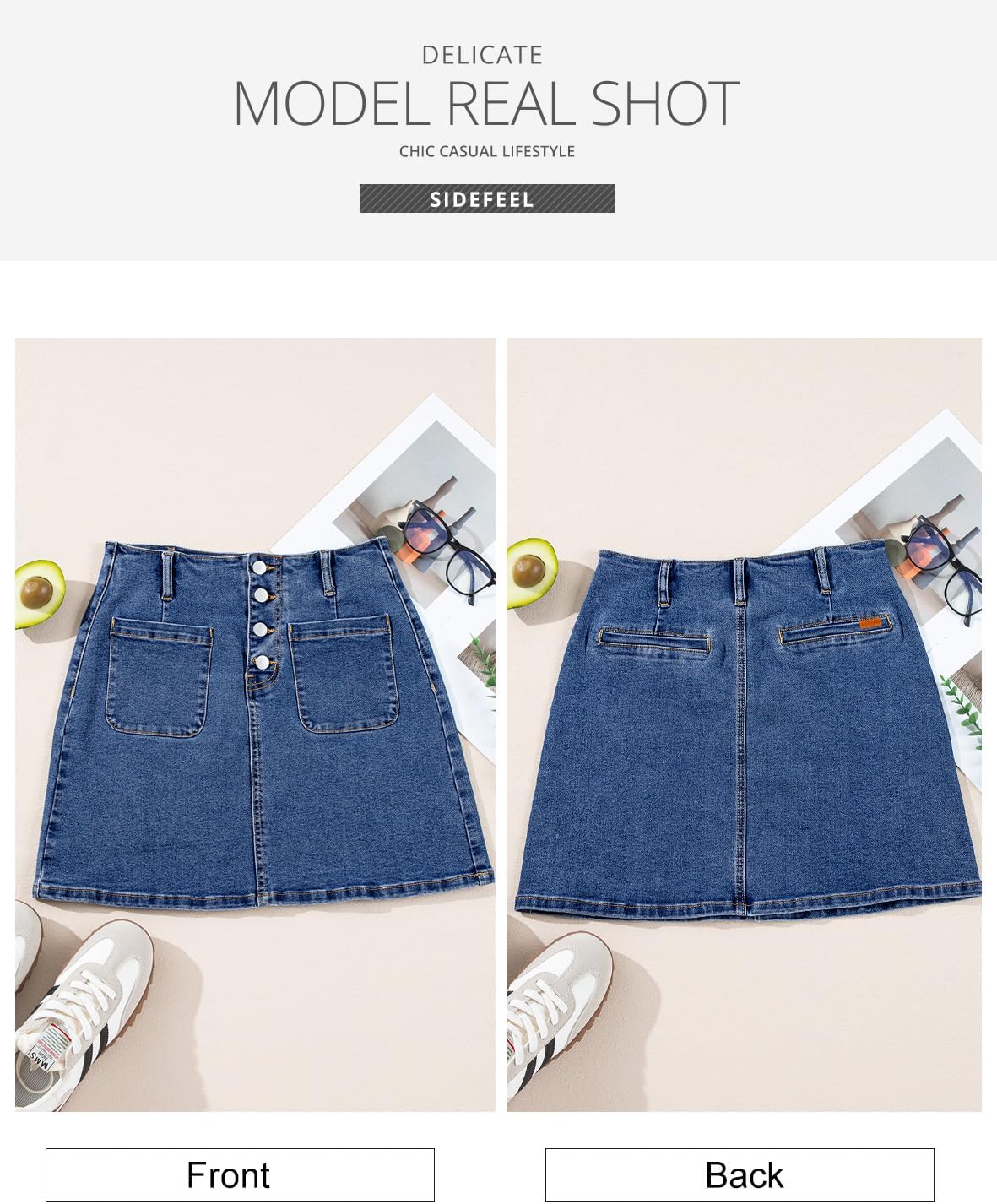 Sidefeel Skirts for Women 2025 High Waist Jean Skirt Denim Skirt Mini Skirt